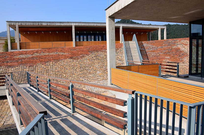 富陽公望美術(shù)館也叫“富春山館”,位于杭州市富陽區(qū),是集博物館、美術(shù)館、檔案館“三館合一”的建筑綜合體,由設(shè)計(jì)大師王澍設(shè)計(jì)。大師以蘇東坡《題西林壁》里的描繪為靈感來源,按照中國傳統(tǒng)的山水序列,建筑整體構(gòu)筑中呈現(xiàn)近山、遠(yuǎn)山瀠洄呼應(yīng)的構(gòu)筑法則和“三遠(yuǎn)”視角,與咫尺之遙的富春山水互相輝映。美術(shù)館設(shè)計(jì)成內(nèi)山和外山,站在屋頂會看到一整片美術(shù)館都是外山,而頂上兩件小居,正是設(shè)計(jì)師心中的富春山居。
