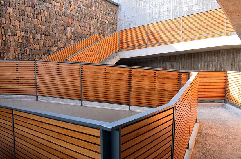 美術(shù)館大量運(yùn)用桃花江戶外防腐竹材和室內(nèi)裝飾竹材,是典型的竹元素主題建筑,在文化場所的建設(shè)中竹材是設(shè)計(jì)師表達(dá)設(shè)計(jì)文化內(nèi)涵的有力工具。