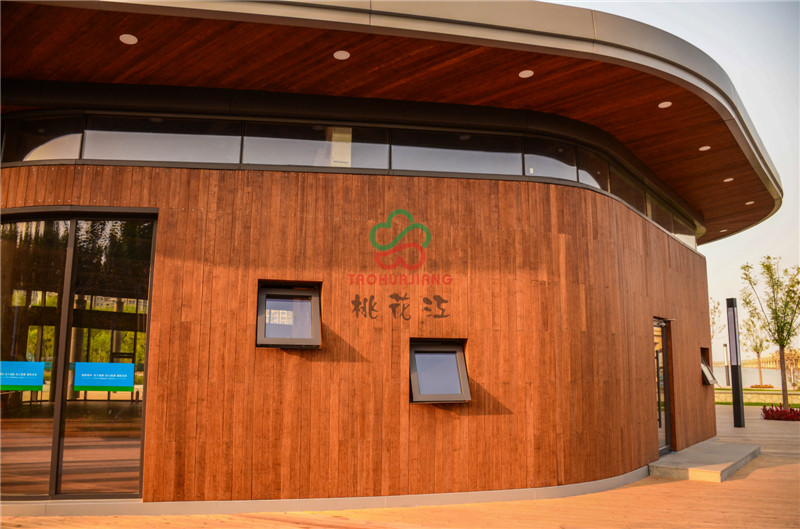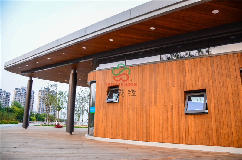 該公園東側(cè)為海濱高速公路,西側(cè)為濱海旅游區(qū)辦公區(qū)域,北臨海博路,南至規(guī)劃海旭道,是從城市空間到海邊的過渡型景觀。項(xiàng)目的建設(shè)是在尊重歷史和現(xiàn)實(shí)條件基礎(chǔ)上,結(jié)合先進(jìn)的生態(tài)建設(shè)理念,大面積運(yùn)用了桃花江竹材科技的環(huán)保竹材作為主體裝飾材料,公園內(nèi)的主體建筑,采用桃花江竹材科技的全竹裝飾來裝潢,高炭防腐竹材做外墻和吊頂裝飾,色澤明亮,渾然一體,既現(xiàn)代又傳統(tǒng)的竹材裝飾風(fēng)格為公園營造自然、郊野景觀氛圍,為市民提供一個(gè)全新的休閑娛樂場所。