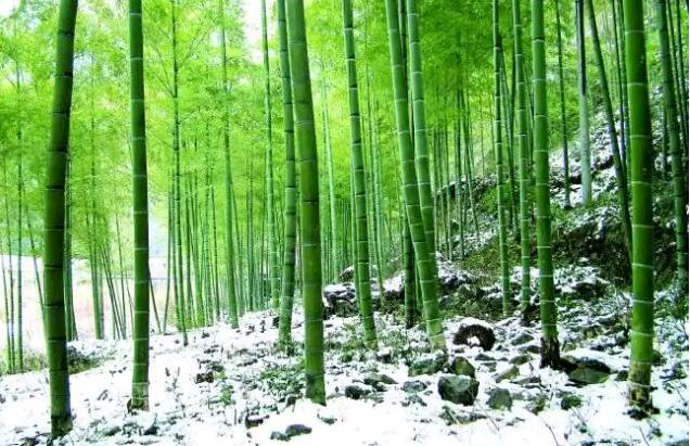 竹子能在荒山野嶺中默默生長,哪怕是溝溝壑壑,它都能長年累月守著無邊的寂寞與凄涼,經(jīng)受著風(fēng)霜雪雨折磨也能頑強生存。在嚴(yán)寒的冬季,竹子不但不會落葉,反而顯得更加青翠,當(dāng)殘冬的余寒還沒有被春風(fēng)融盡,新筍就悄悄在地上萌發(fā)了,一場春雨過后,竹筍破土頂石而出,用“清明一尺,谷雨一丈”之勢,直指長天,顯現(xiàn)竹子那青春活力和勃勃生機。